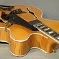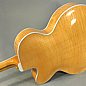 This is a 17" cutaway archtop guitar in the D'Angelico tradition. The top and back are carved from Sitka spruce and curly bigleaf maple. The sides are curly maple. The neck is curly maple with black veneers and black headstock veneers. The fretboard, bridge, tailpiece, and pickguard are ebony. It has the plastic bindings and purflings traditional to thiskind of instrument. There is an EMG low impedance pickup.