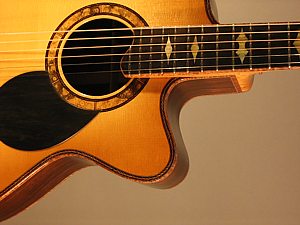 The current waiting time before I begin a guitar is about 9 months. You can use this time to work out the details of your new guitar with me. I am available to advise you and discuss your choices. You may involve yourself in the design, or leave many of the aesthetic decisions to me. Anything about your guitar can be changed up to the time I start building. When I am ready to start work on your guitar, the deposit increases to 50% of the final price.